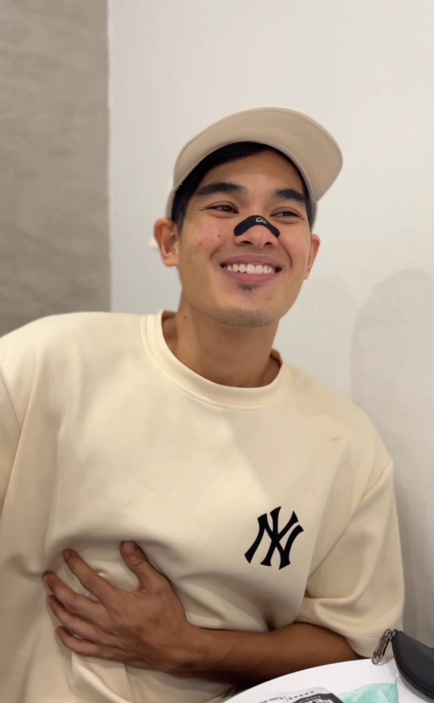 1. Pastikan hidung Anda bersih dan kering untuk daya rekat yang optimal.